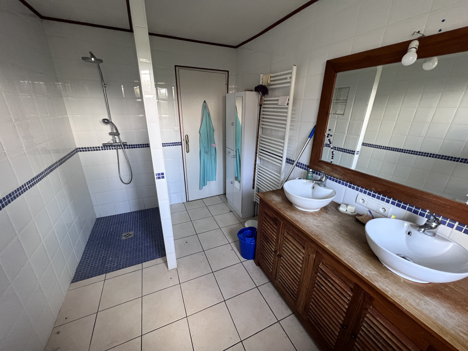 Cette maison est composée d'une entrée/couloir desservant un séjour double ainsi qu'un salon, 2 chambres et une salle d'eau avec WC séparé et une cuisine aménagée.